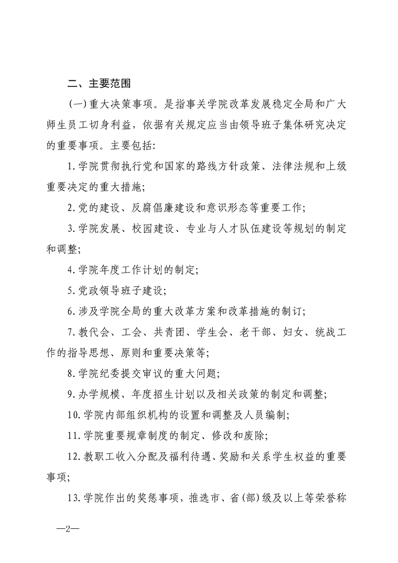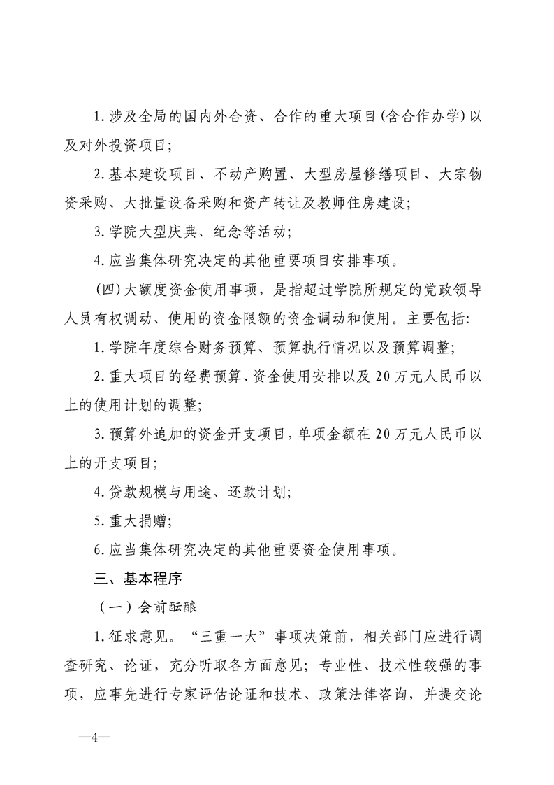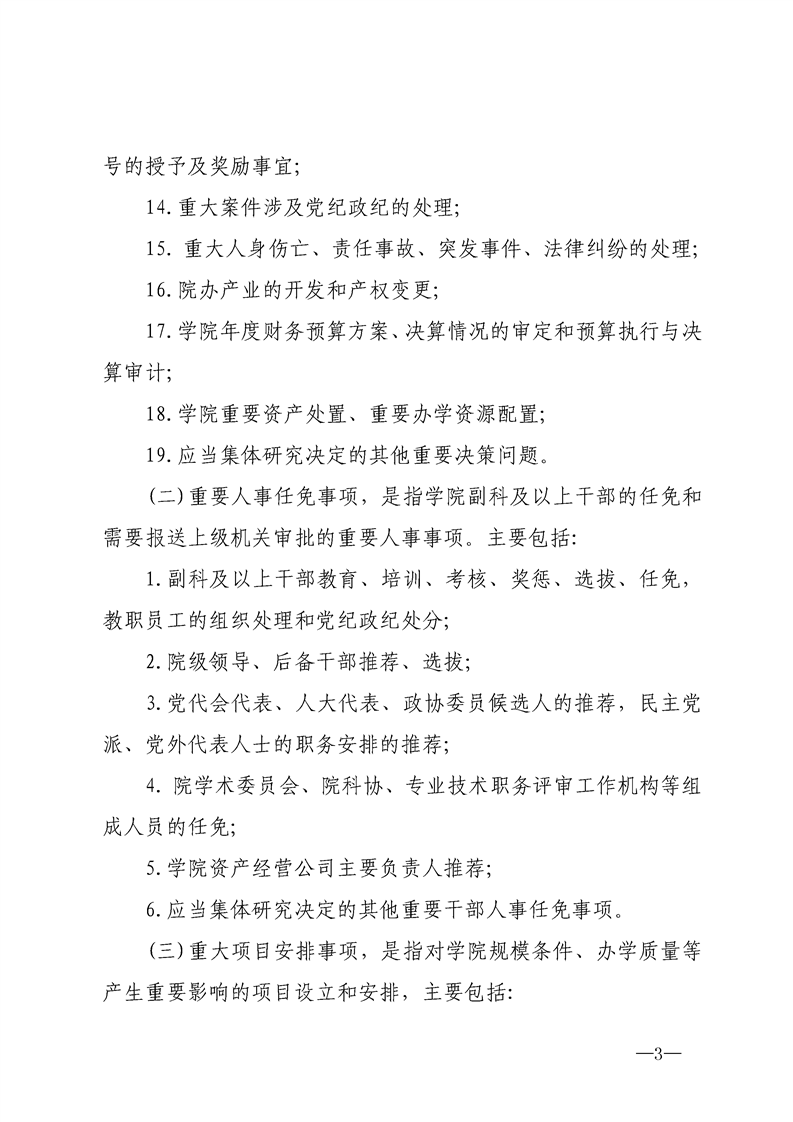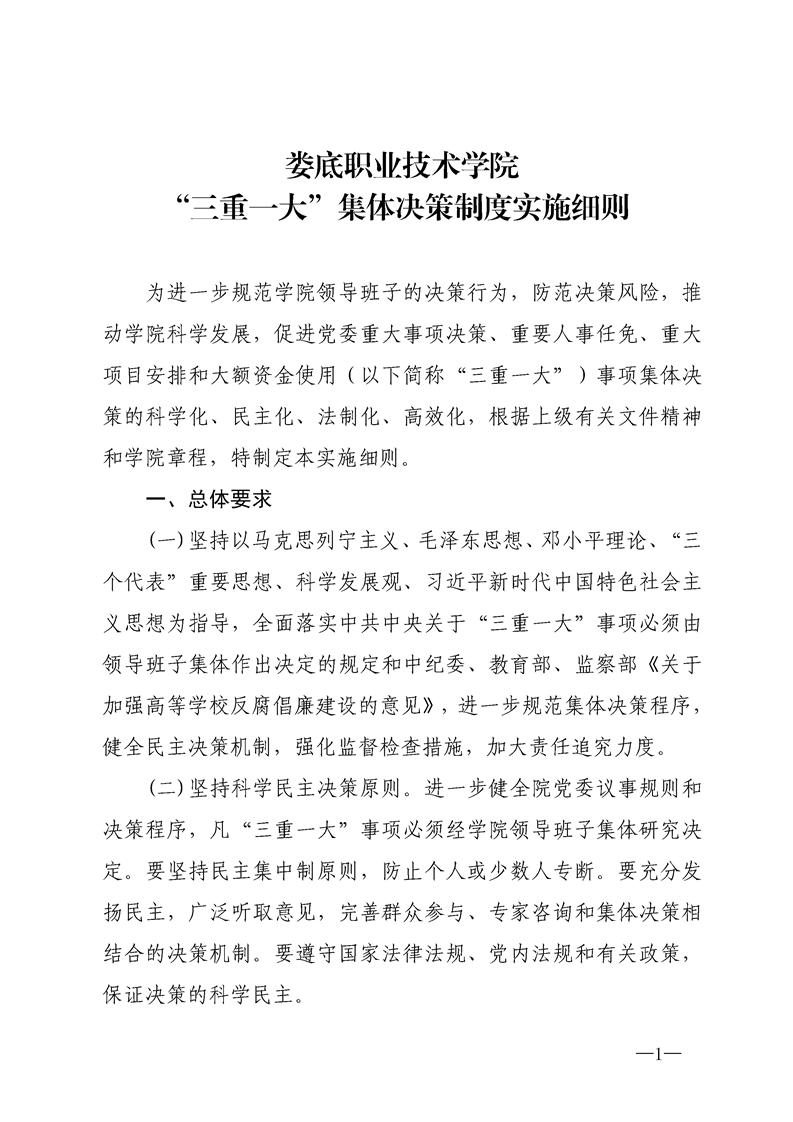 娄底职业技术学院“三重一大”集体决策制度实施细则