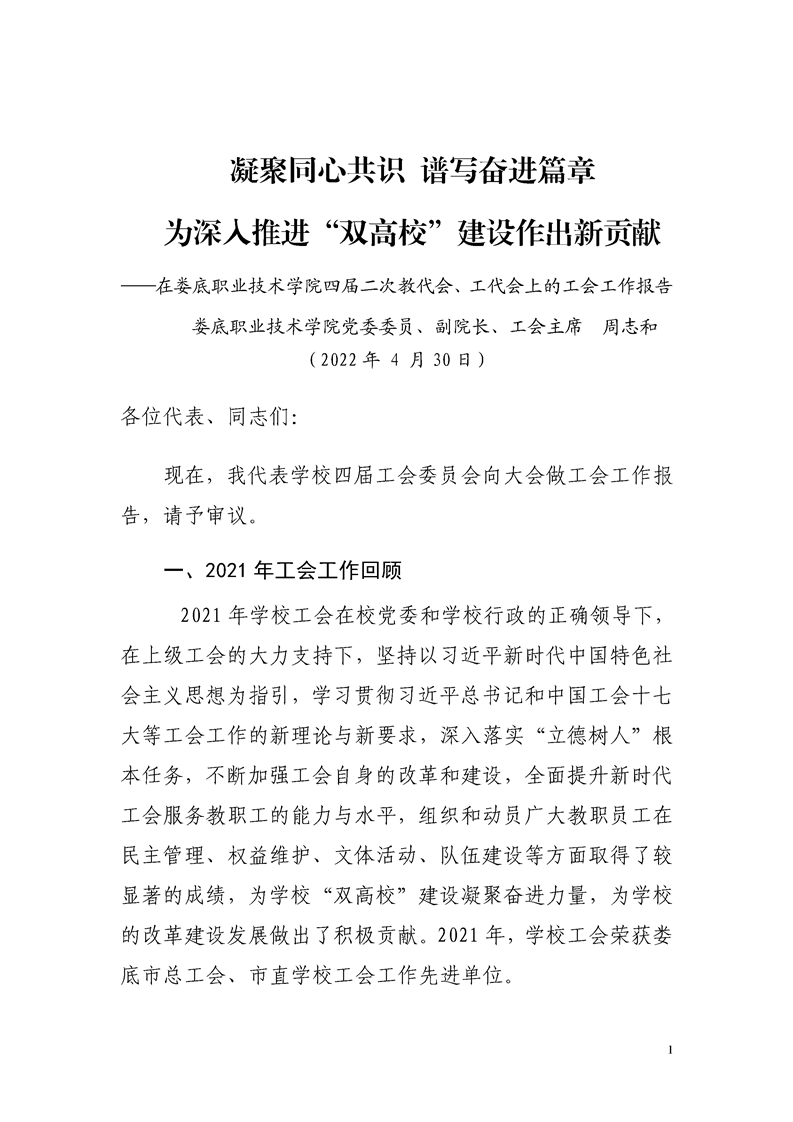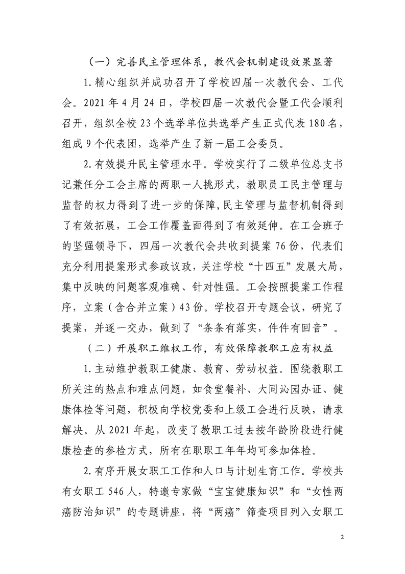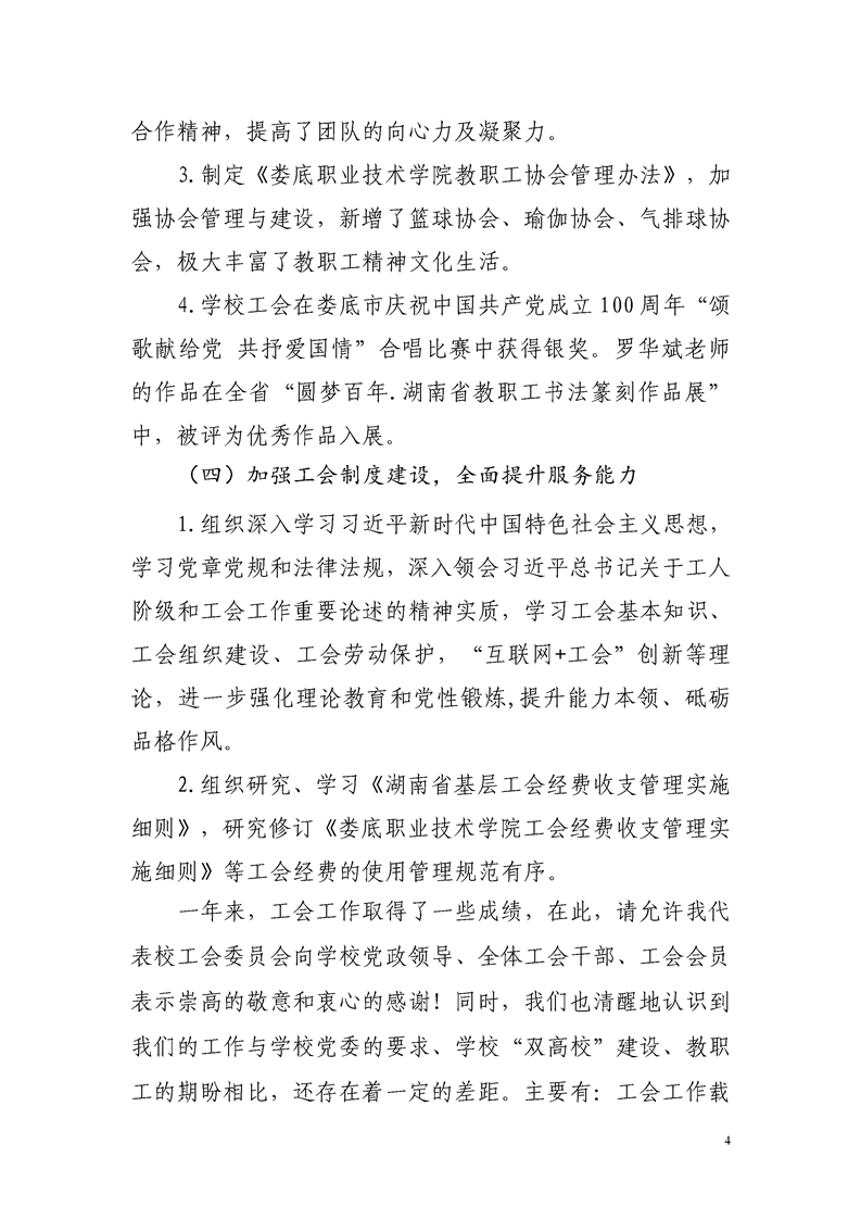 工会工作报告(四届二次工代会)