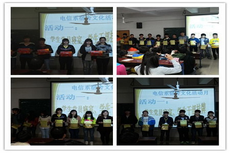 随着三月份志愿者主题活动月落下帷幕,电信系于4月2日晚上在主教学楼310开启了四月份的宿舍文化活动月,系学工主任李规、学工干事佘彬、辅导员梁飞翔、李韶辉与全体系、班团学生干部参加。