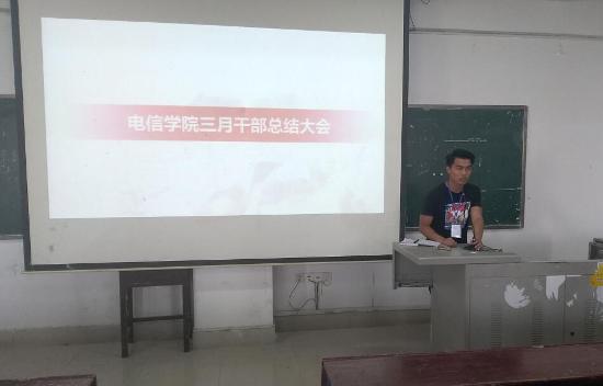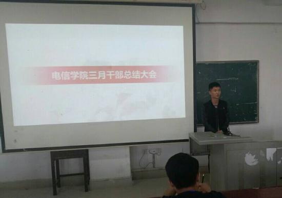 4月10日,电子信息工程学院学生会团总支在主教楼510召开三月份工作总结大会。院学生会团总支全体干部参加此次会议,会议由团总支副书记李佳琦主持。