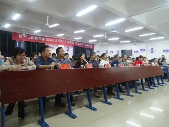 学校党委副书记王健龙,电信学院院长刘罗仁,副院长晏然,团总支书记张雯宇,学工干事周永坚及全体辅导员出席并担任评委,电信学院部分班级参加此次比赛。此次比赛以“立德修身,诚信为本”为主题,采用十分制、自主命题演讲的形式进行,各评委分别从演讲内容、演讲技巧、服装礼仪三个方面进行评分,共有14位选手参赛。