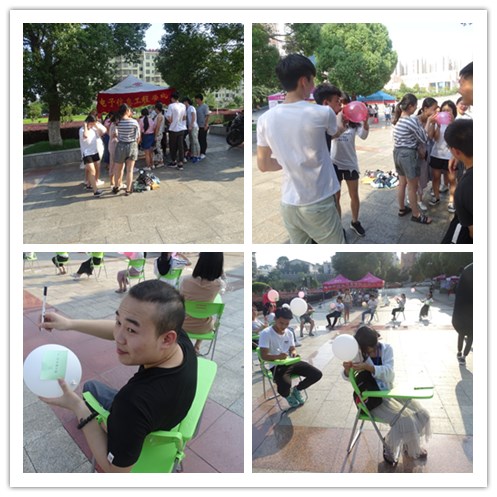 活动开始前,周雯婷老师带着学生干部们在烈日炎炎下精心的布置了活动会场并备好了游戏道具。此次活动面向全校师生,我院领导十分重视,副院长晏然冒着烈日亲临活动现场。我院为全校师生精心策划了两个十分具有特色的心理健康小游戏:体现合作精神的“合力吹气球”;舒缓心情、释放压力的“放飞气球”;虽然与竞技体育不同,但同样也展现了公正、互动、活泼的风格。