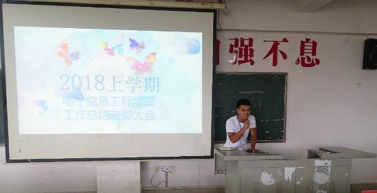 7月1日,电信学院学生会团总支在主教楼510召开2018年上学期期末工作总结表彰全会。院学工干事周永坚,学生会团总支全体学生干部参加本次会议,会议由17级学生干部李芳怡、伍游主持。