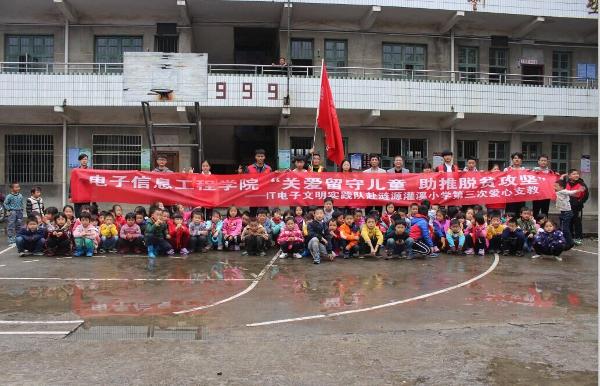 根据《教育脱贫攻坚“十三五”规划》,结合我院的前期调查与前两次支教活动。10月24日上午七点,电子信息工程学院IT电子文明实践队冒着细雨第三次起航至娄底涟源市金石镇灌溪小学开展“关爱留守儿童 助推脱贫攻坚”爱心支教志愿者活动。