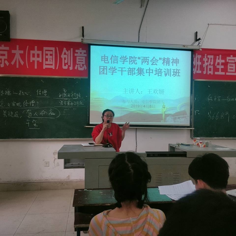 为认真贯彻两会精神,落实“四进四信”具体要求,提高团学干部政治素质与修养,2019年4月8日下午,电子信息工程学院团总支在主教楼108多媒体教室组织团学干部集中学习“两会”精神,会议由团总支书记王欢妍老师主持,各班班长、团支书参与学习。