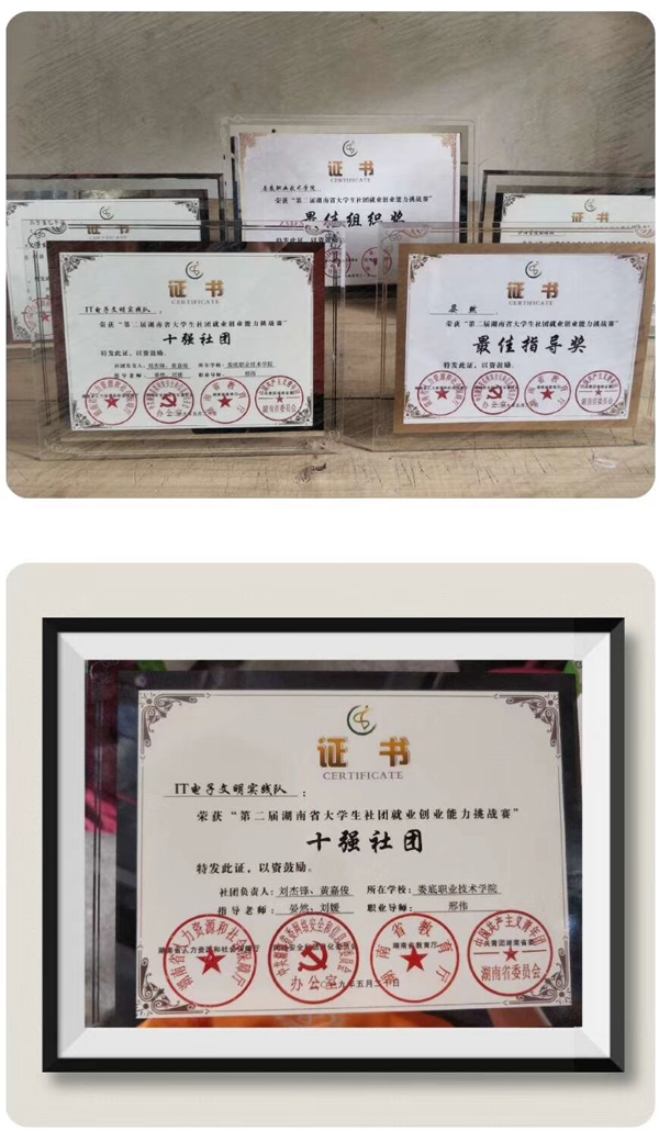 5月20日,由省人社厅、省委网信办、省教育厅、共青团湖南省委联合主办的第二届湖南省大学生社团就业创业能力挑战赛在长沙举行决赛,我校IT电子文明实践队评为省“十强社团”,我校大学生艺术团、护理学院排球社、农林工程学院花卉协会入围百强社团,晏然老师荣获最佳指导奖,我校荣获最佳组织奖。