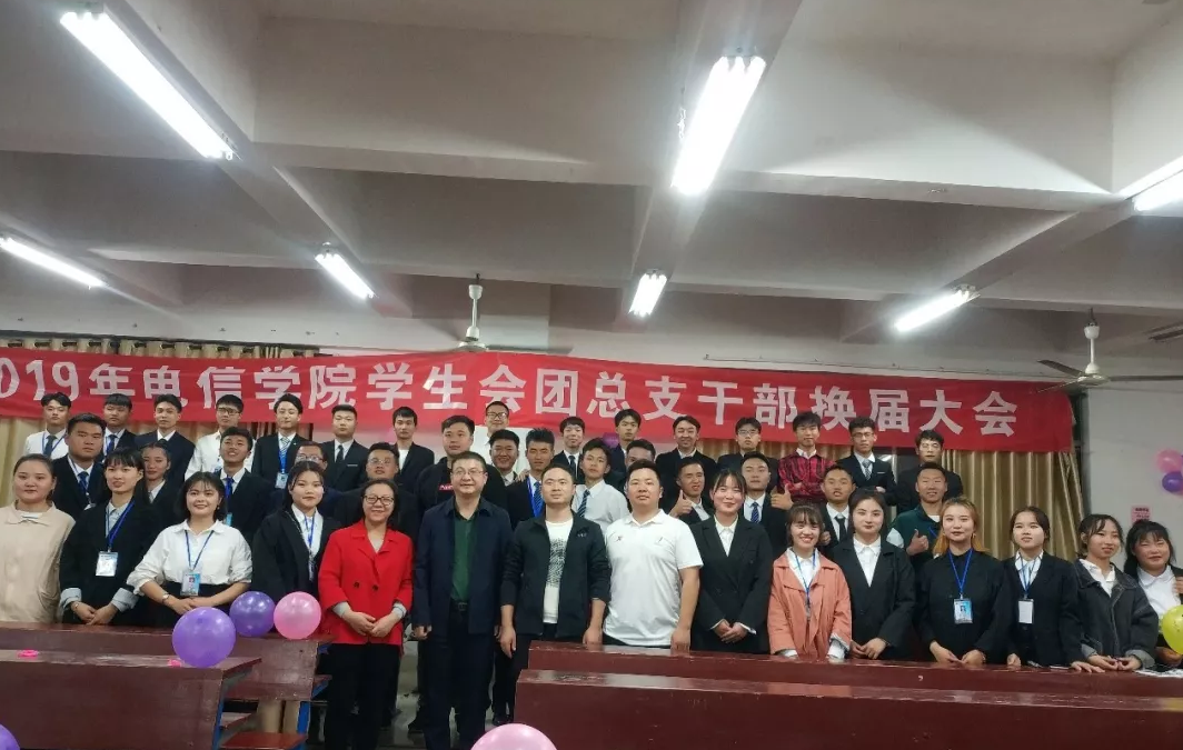 2019年11月10日晚,电信学院学生会团总支2019年换届大会在主教楼210成功展开。本次大会分三步进行,由电信学院学工副院长晏然、团总支书记张雯宇、学工干事周永坚以及电信学院各辅导员老师、学生会团总支17届部长出席并担任评委,全体学生干部参加。