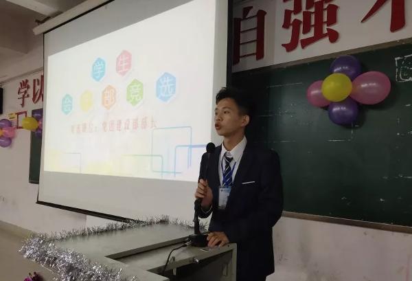 在观看完视频之后 ,紧接着的是18级各干部的竞选ppt演讲,四十余名候选人依次上台发言,纷纷阐述了各自竞选的优势以及今后的工作思路与发展想法。