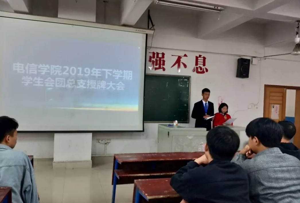 11月12日,电信学院学生会团总支18届上任授牌仪式在主教楼210成功召开,学院学工干事周永坚出席,全体学生会团总支成员参加。
