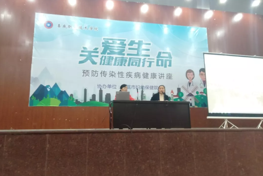 为进一步加强学院传染病防控工作,提高学生防病和自我保护意识,11月13日晚,我院邀请到了娄底市妇幼保健院的王主任和曾主任,分别在新培楼一楼多功能报告厅和主教楼2楼报告厅为同学们进行预防传染性疾病健康知识的专题讲座。讲座由曹慧老师主持,学院所有学生参与听讲。