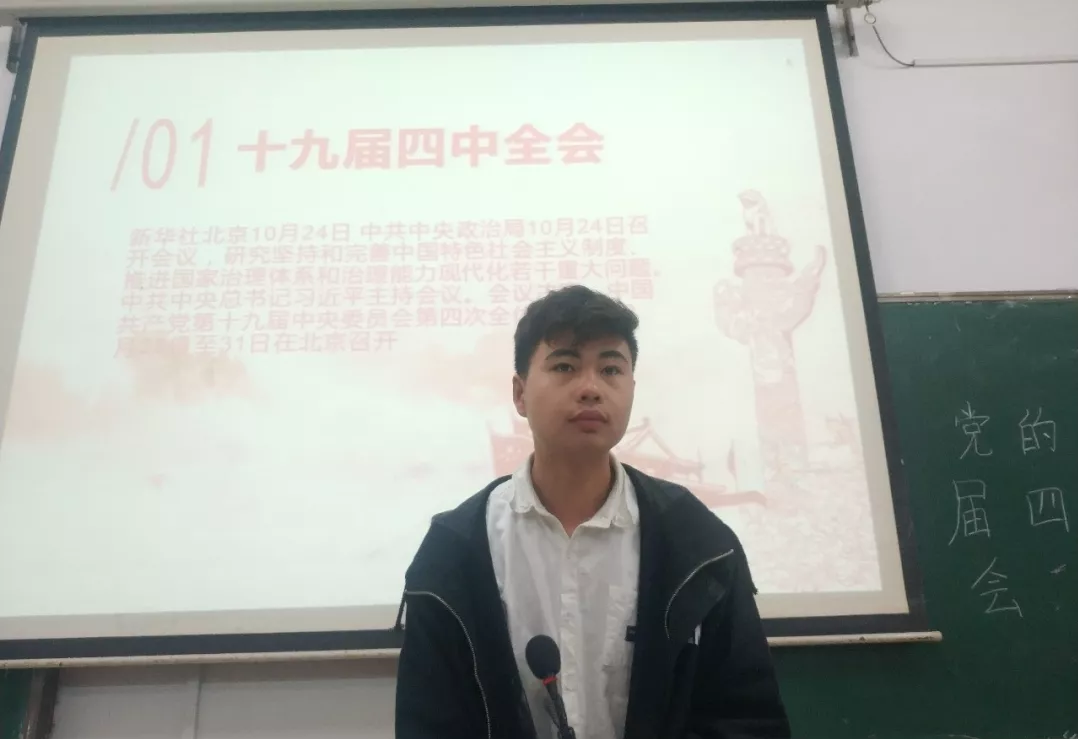 会议开始,各班主持人通过视频和PPT的形式向同学们讲述了本次党的十九届四中全会的会议内容和会议精神,同学们认真倾听,积极交流,会议开展顺利。