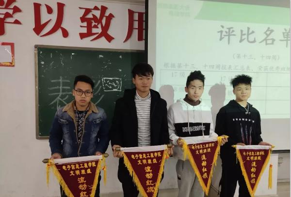 会议伊始,刘培针对这两周的综合评比的数据进行评比,根据综合数据的评比诞生了四个优秀班级和八个优秀文明寝室。接着,刘培对两周的班级考核汇总进行评价,并表示希望优秀班级再接再厉,排名靠后的班级力争上游。随后,由党团建设部部长王宇为四个优秀班级和八个优秀文明寝室颁发流动红旗。