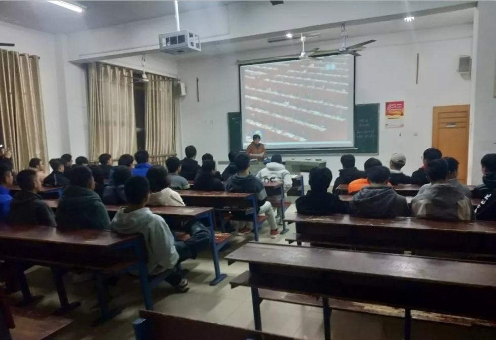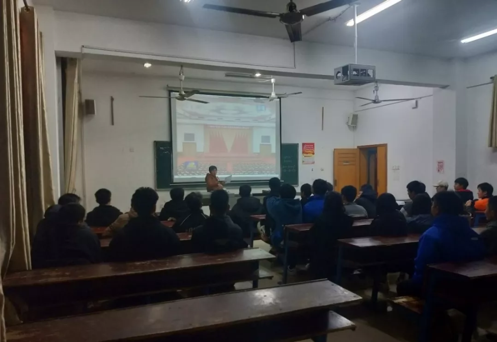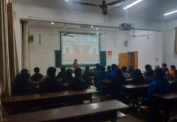 为了增强大学生的爱国意识,弘扬马克思主义学风,电信学院各班于12月22号晚在主教楼二楼组织开展了“不忘初心,牢记使命”主题班会。