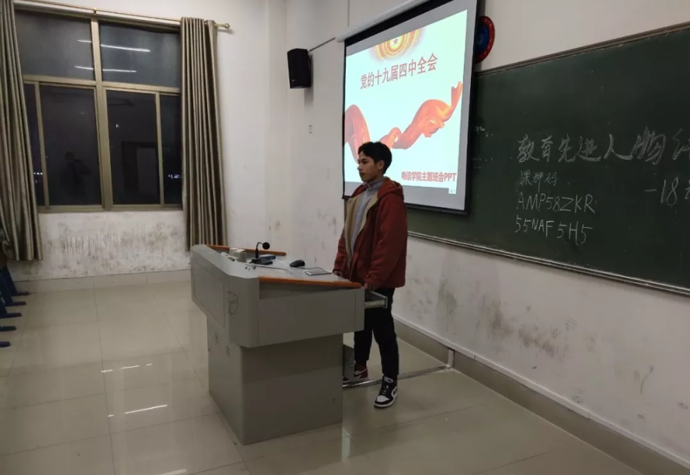 班会开始,各班主持人介绍了本次班会的主要内容,并组织同学们观看了十九届四中全会的开展视频,虽是寒冬,但是同学们的学习热情不减,班会开展顺利。