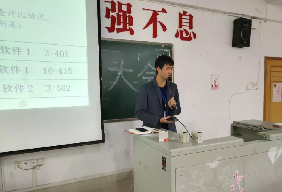 会议伊始,刘培针对这两周的综合评比的数据进行评比,根据综合数据的评比诞生了四个优秀班级和八个优秀文明寝室。接着,刘培对两周的班级考核汇总进行评价,并表示希望优秀班级再接再厉,排名靠后的班级力争上游。随后,由副主席毛新庆为四个优秀班级和八个优秀文明寝室颁发流动红旗。