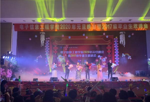 2019年12月26日晚19:30,电信学院2020年元旦晚会暨2017级毕业生欢送会在新培楼102多功能报告厅隆重举行。莅临本次晚会的嘉宾有:学校党委副书记王建龙,学校团委书记刘媛,党总支书记李济民,电信学院院长刘罗仁,副院长谢完成,副院长晏然,团总支书记王欢妍,电信学院各班辅导员,专业老师以及17级毕业生,各学院代表,各班级代表等。