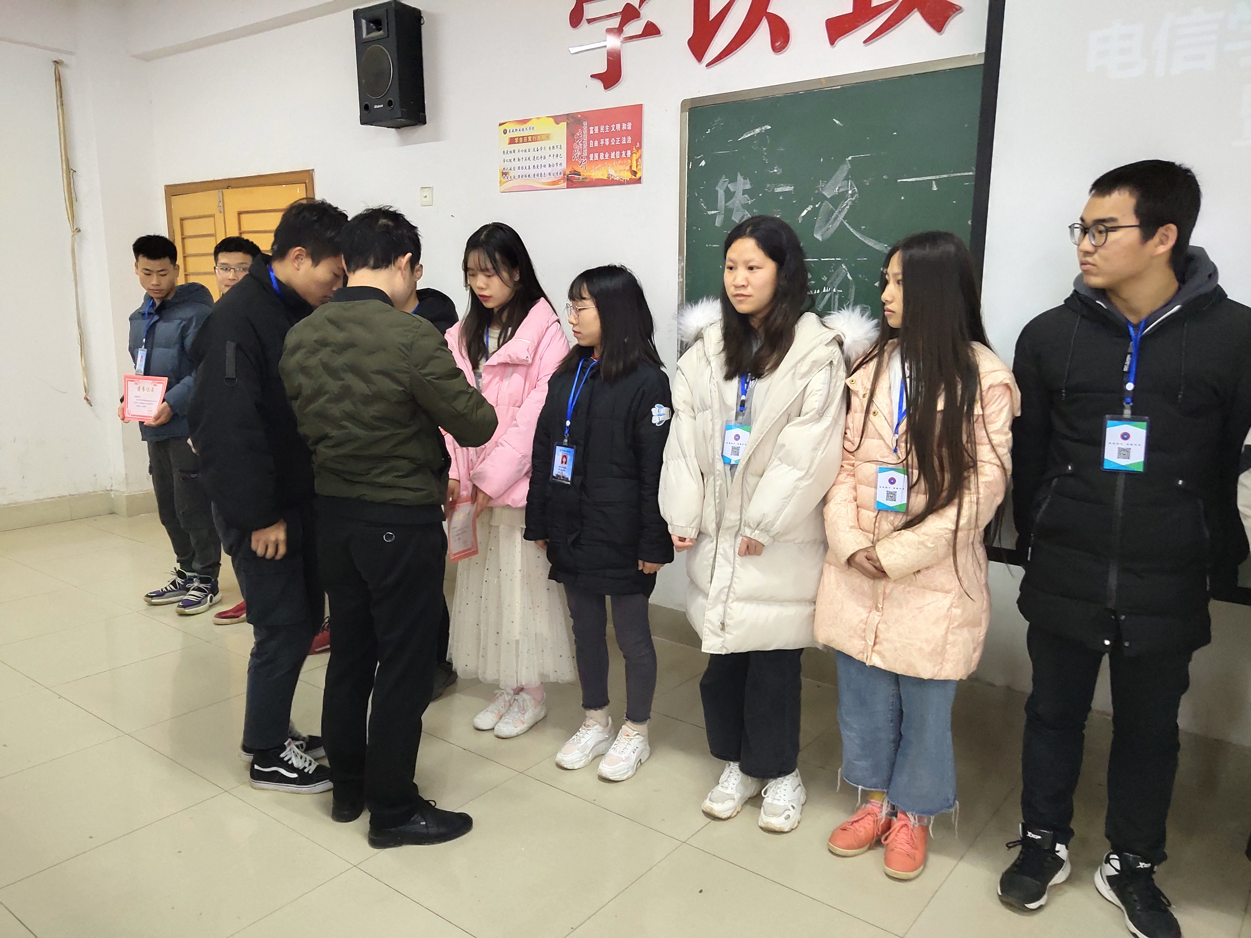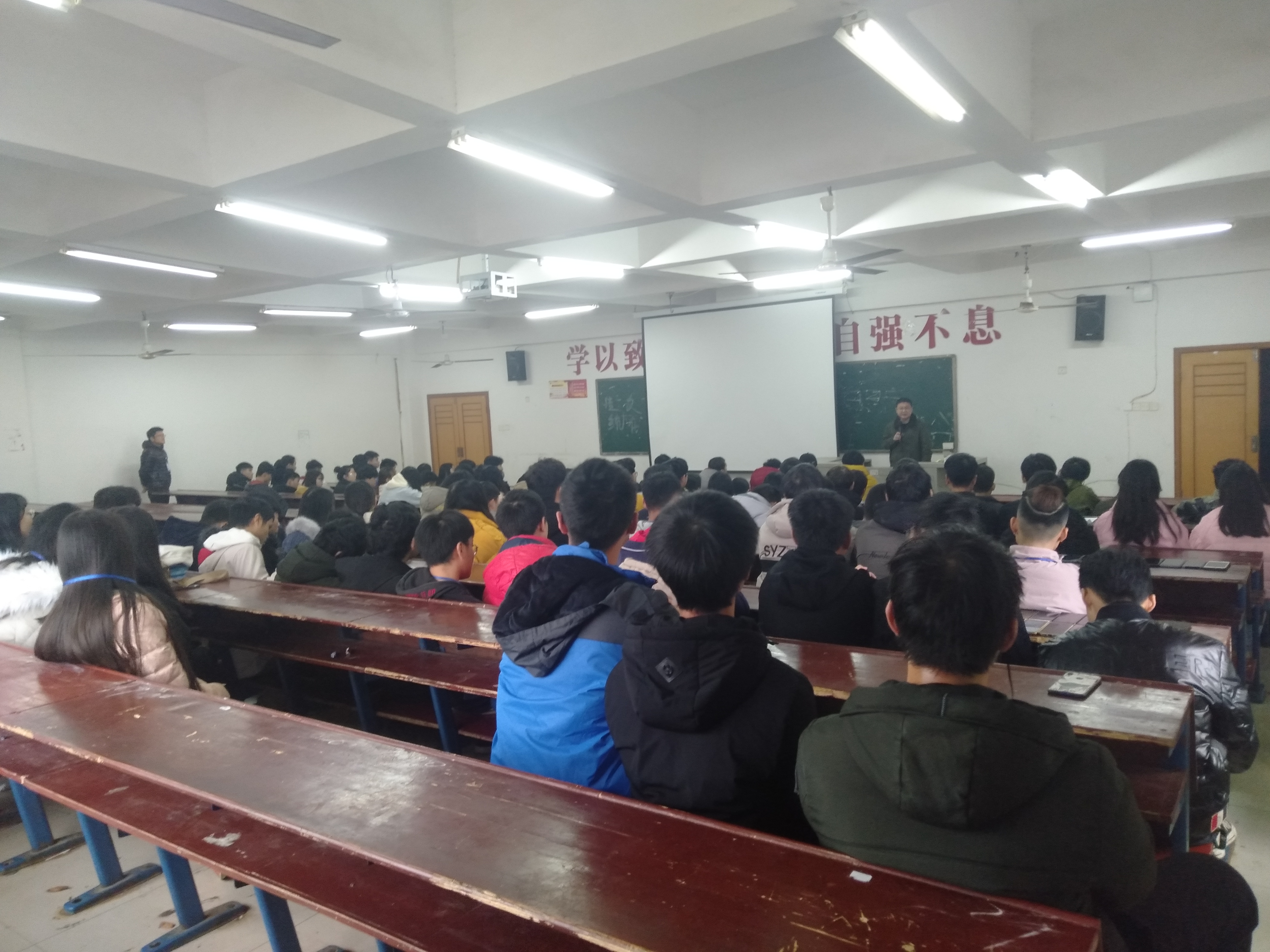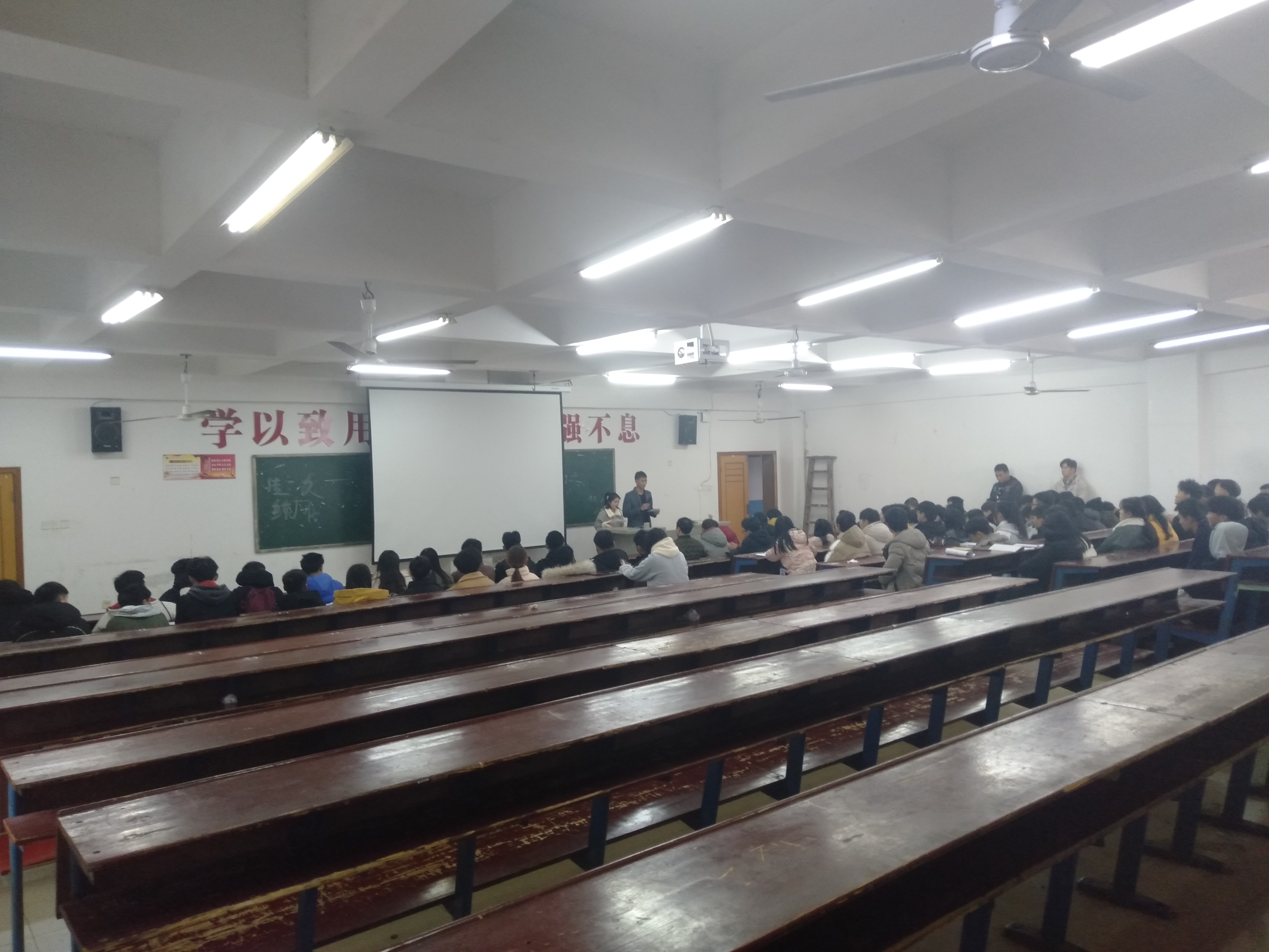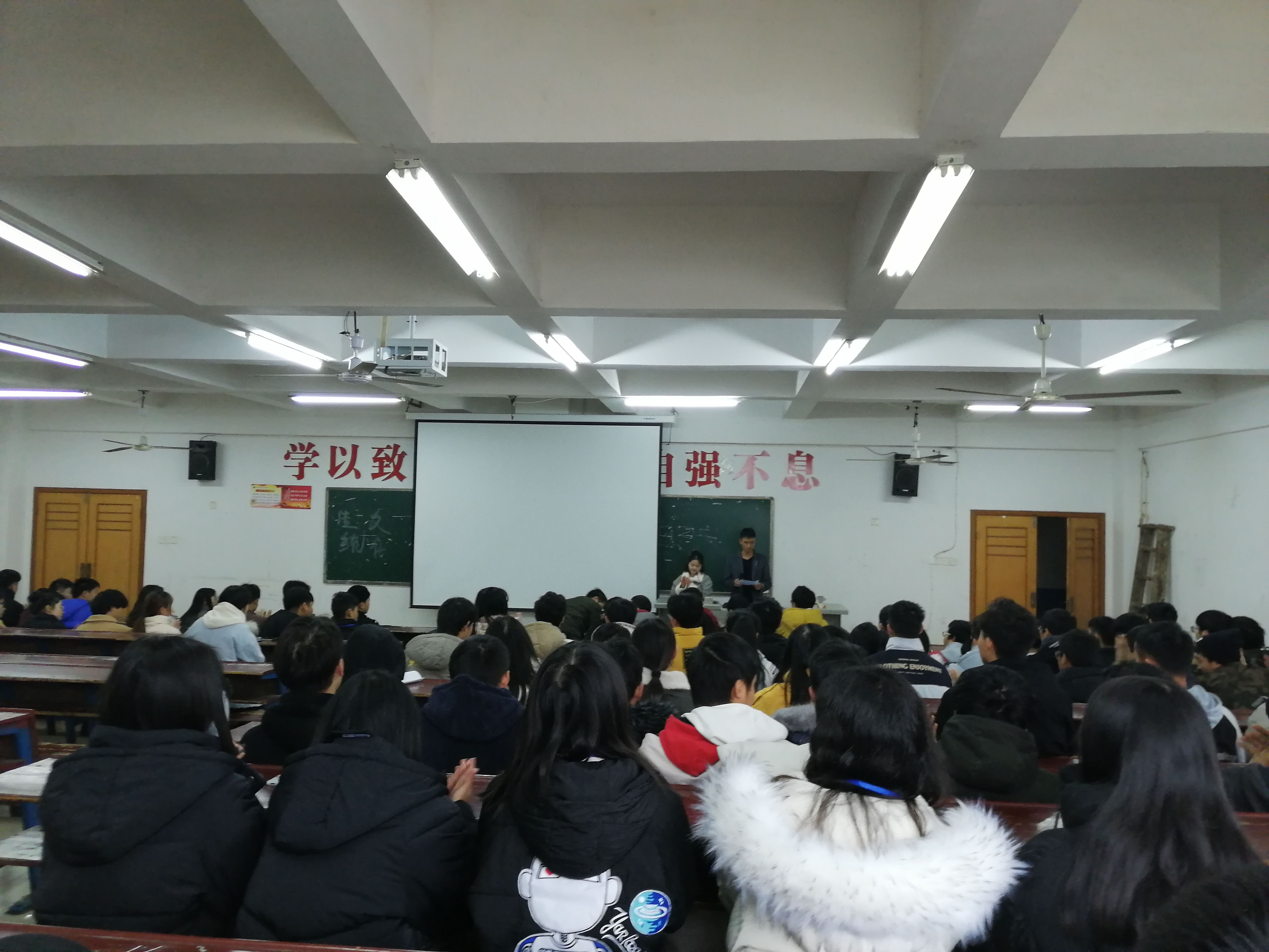 本次大会共共分为4项,大会第一项由学工副院长晏然讲话,第二项由学工干事周永坚讲话,晏然院长和周永坚老师给我们总结了这一年我们工作的优秀之处和不足之处,给了我们指出明确的目标同时希望我们在新的一年里工作更加认真积极。