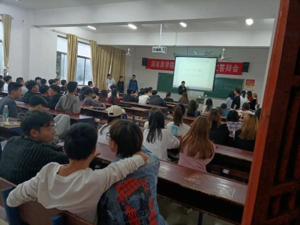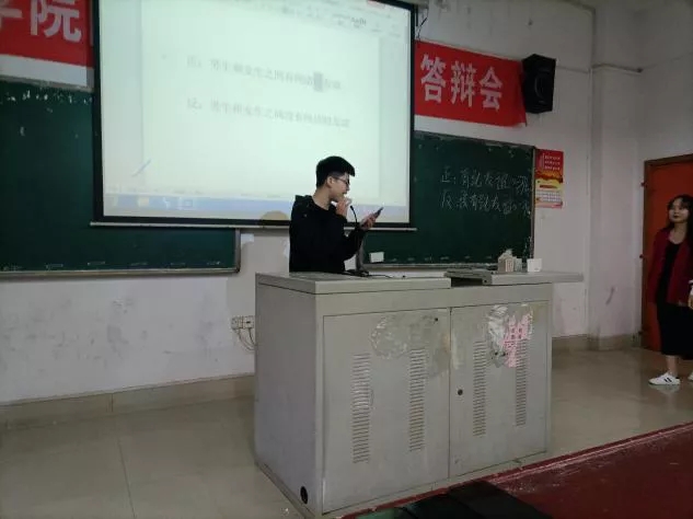 2020年10月27日星期 二下午4:30,在我校主教楼218开展了电信学院19华为1班与经管学院19电商3班的友谊辩论赛。此次辩论赛由双方团支书担任评委。以“不忘初心,牢记使命,心怀祖国,砥砺前行”为主题,由正方辩手组成的电子信息队和由反方辩手组成的经管队,通过辩题“国与家,先有国还是先有家”展开激烈辩论。