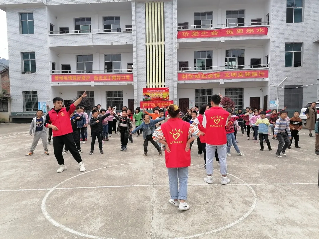 第一项:由队员徐亮、田晓芳同学带领孩子们集体操教学:《你笑起来真好看》舞蹈,让孩子们真正享受到舞蹈艺术的熏陶,培养农村地区少年儿童热爱祖国、传承优秀舞蹈文化传统的信念和精神做出了富有成效的探索。目的就是让他们有更多学习先进文化和丰富生活的机会。
