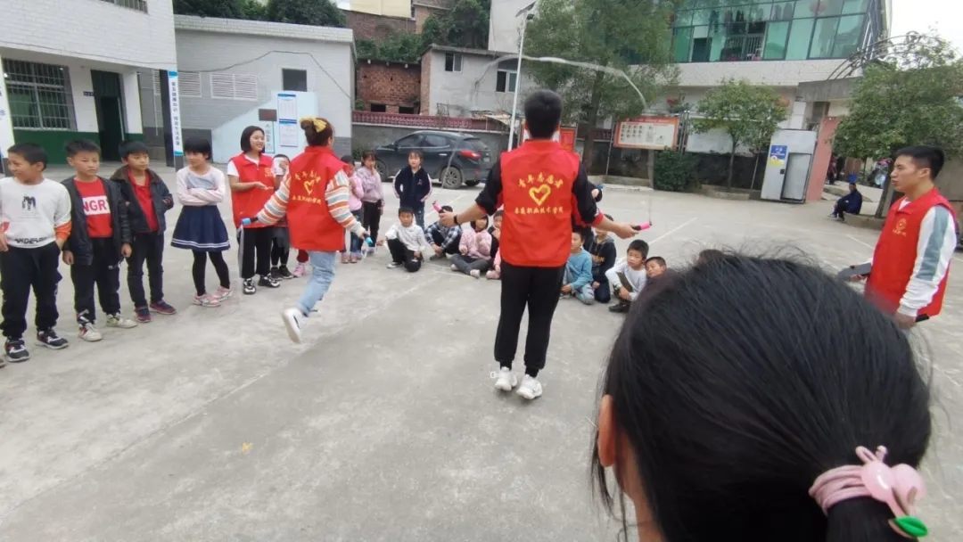 第四项:由队员们带领孩子们进入了跳绳友谊比拼,培养孩子们的默契,活动一片欢声笑语,活动增强了孩子们锻炼身体、劳逸结合的意识,进一步增强了孩子们与队员之间的情感交流,进一步增强了大家的凝聚力和向心力。