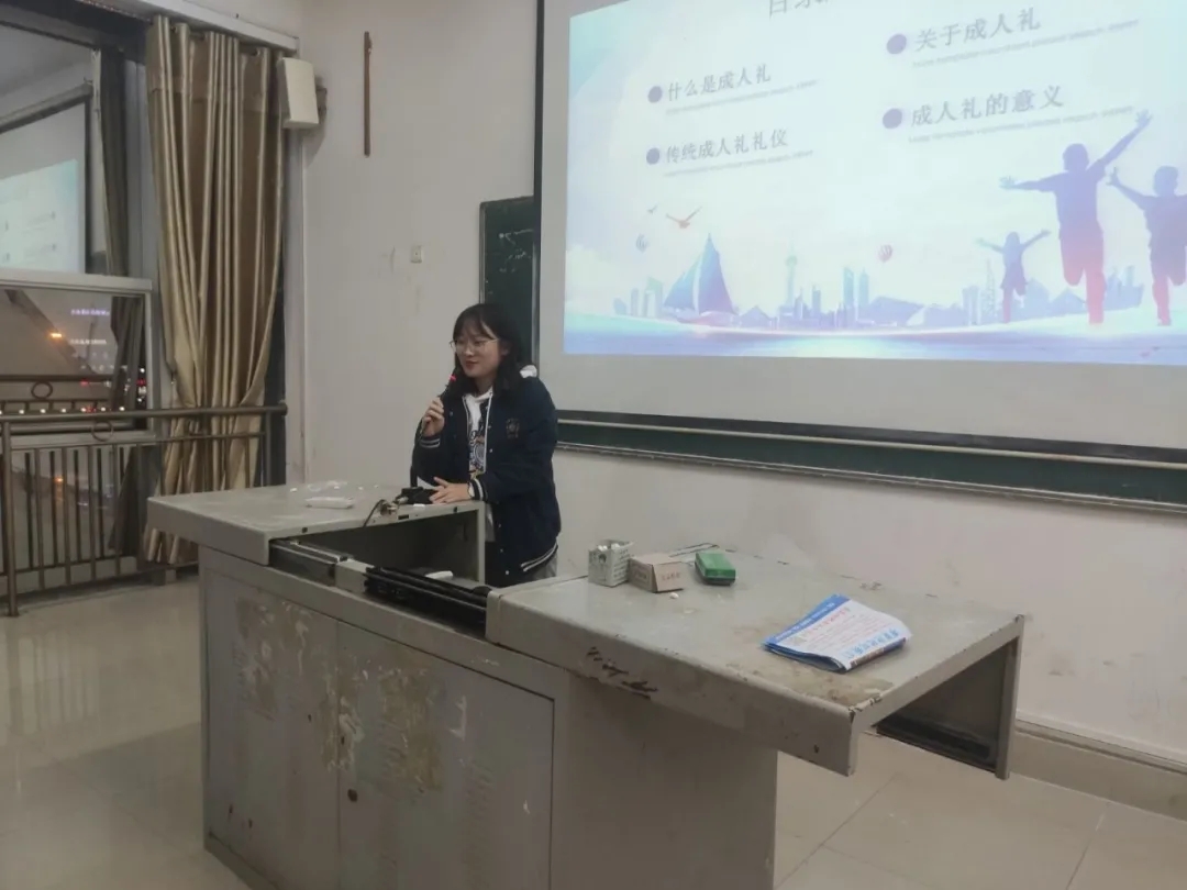 活动分两个阶段展开:第一阶段由主持人讲解PPT,为同学们讲解成人礼的意义,规划自己的未来。第二阶段由同学们回答讨论对成人礼的看法以及对自己未来的规划想法。成人礼并非空话空谈,这是为了更好的让同学们规划自己的人生,找准属于自己的目标,踏实向着明确的方向前进。