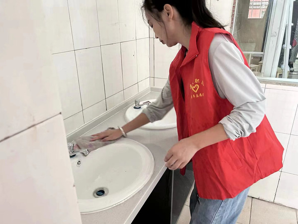 活动过程中,入党积极分子卖力地擦拭楼梯围栏,冲洗厕所,打扫过道垃圾。预备党员在完成本区域卫生工作之后集中在新生宿舍楼7栋,一人一间宿舍进行卫生清扫比赛。预备党员欢声笑语,互相鼓励,相互友好,撸起袖子认真擦拭桌上堆积的灰尘,用拖把擦拭每一块地板,刷掉宿舍厕所的陈年污垢。终于在预备党员和入党积极分子的努力下,宿舍焕然一新。最后由学工党支部的老师对这些宿舍进行了卫生评分,评选出最干净整洁的宿舍。