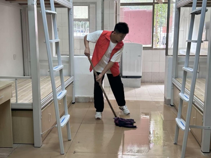 活动过程中,入党积极分子卖力的擦拭楼梯围栏,冲洗厕所,打扫过道垃圾。预备党员在完成本区域卫生工作之后集中在新生宿舍楼7栋,一人一间宿舍进行卫生清扫比赛。预备党员欢声笑语,互相鼓励,相互友好,撸起袖子认真擦拭桌上堆积的灰尘,用拖把擦拭每一块地板,刷掉宿舍厕所的陈年污垢。终于在预备党员的努力下,宿舍焕然一新。最后由学工党支部的老师对这些宿舍进行了卫生评分,评选出最干净整洁的宿舍。