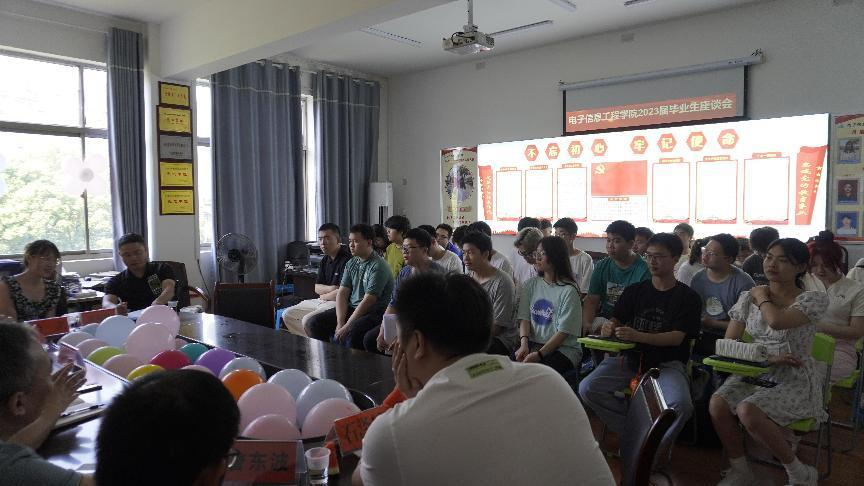 2023年6月26日,电子信息工程学院在实训楼301召开了2023年届毕业生座谈会,参加本次会议的人员有电信学院院长刘罗仁、学工副院长邓明亮、教育室主任吴水平、曾东波、学工干事林莎、心教专干周永坚、大数据专业主任段苗、辅导员老师刘利辉、石泽城以及2023届毕业生代表。本次座谈会由电信学院学工副院长邓明亮主持。