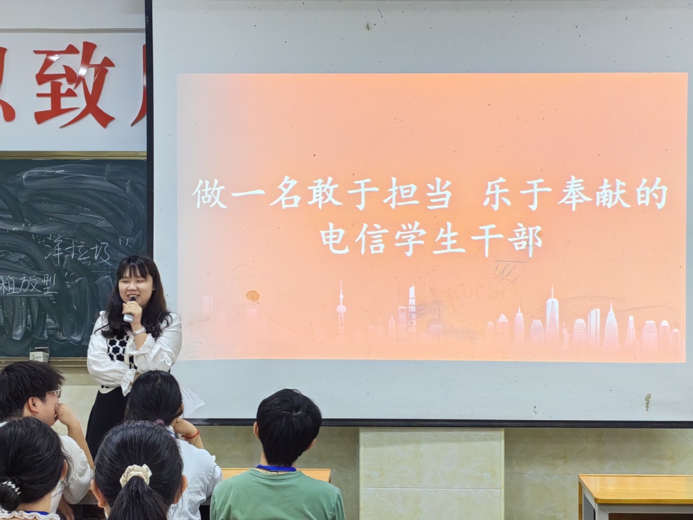 此次大会分为学生班委大会和学生干部交流大会两个部分。学生班委大会汇聚了22级和23级所有班委成员,由电信学院学工副院长邓明亮主持。另一场学生干部交流大会则聚焦自管会团总支干事,由学工干事林莎主持。