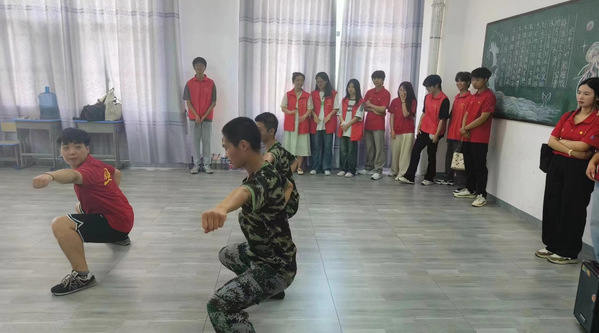 初次与孩子见面时,邓院长以“梦想”为引,发表了一段鼓舞人心的讲话,激励孩子们勇敢追求自己的梦想。紧接着为打破初见的隔阂,肖欢老师巧妙地设计了一系列破冰小游戏,如同一股清新的风,吹散了初见的羞涩与拘谨,迅速拉近了志愿者与孩子们之间的距离。张佳俊同学进行了武术表演与教学小互动,他矫健身姿赢得了阵阵掌声与欢呼更是让现场掌声与欢呼声此起彼伏。