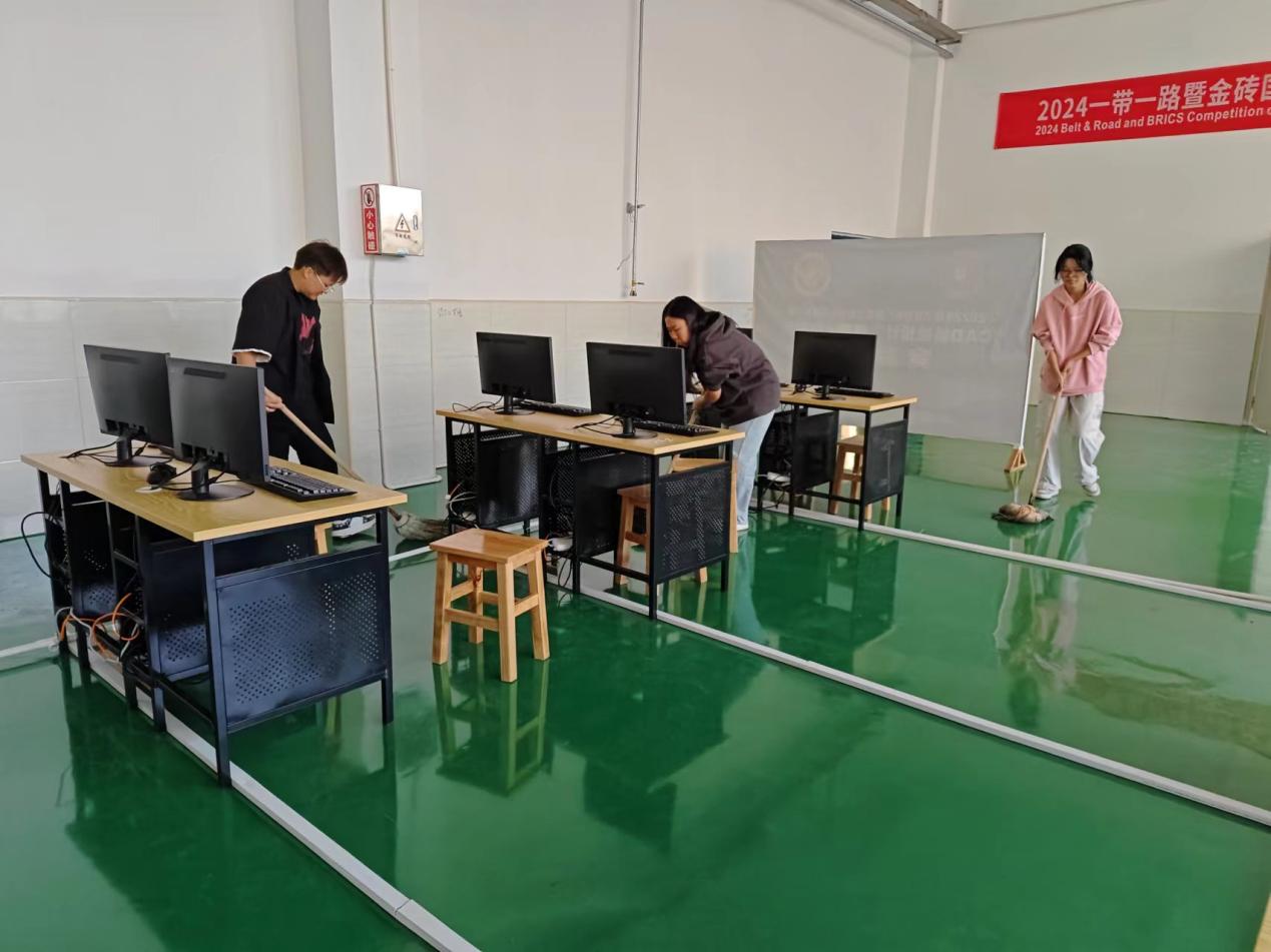为了给参赛选手和观众们营造一个优良舒适的大赛环境,党组织与团组织紧密合作,充分发挥各自的优势,共同投入到大赛的筹备工作中。每个人都投入到各自的工作中,勤勤恳恳,一丝不苟。他们以实际行动,彰显了青春的热情与担当,党员老师们体现出先锋带头作用,党员的责任感,使命感。将分为两人一组,三人一团,互相协作,有条不紊地进行着赛场布置工作。他们细心地擦拭着每一张桌子,仔细地检查着每一把椅子,调试每一台仪器,确保不会将来影响选手的比赛。每一个人都精心尽力,从他们身上看到了青春的活力,以自身行动展示的对党组织的向往,用行动阐释了“青年是革命的基石,青年是人类的希望”这句话,青年是祖国的希望,从不是垮了的一代,因为他们扛起了时代赋予他们的担当。