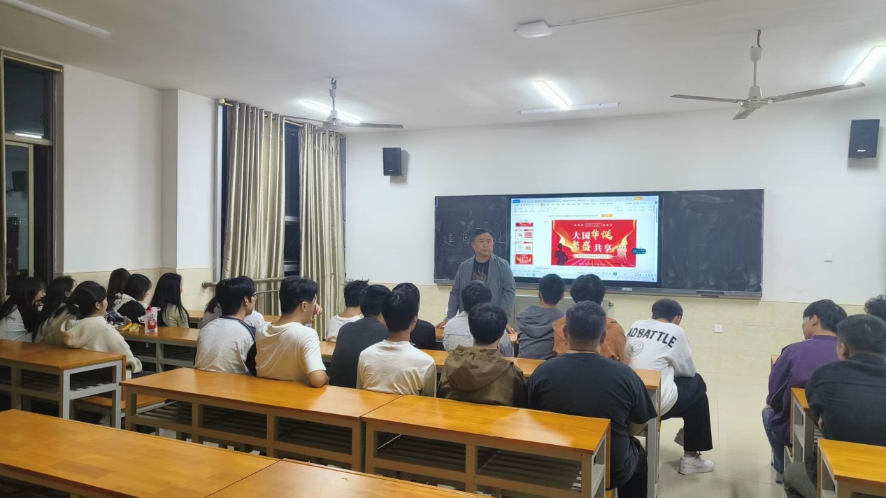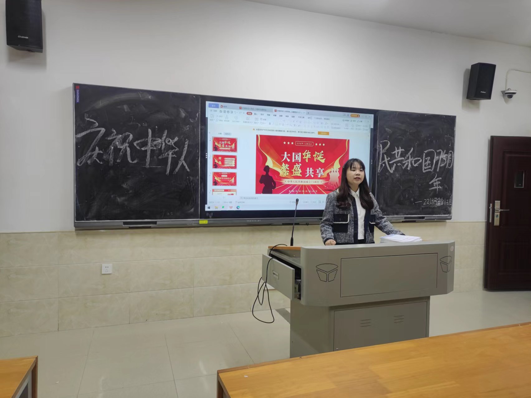 泱泱中华,博大精深,为庆祝祖国75周年,使全体师生深刻体会祖国艰辛历程,于10月7日在电信学院主教楼开展班会.