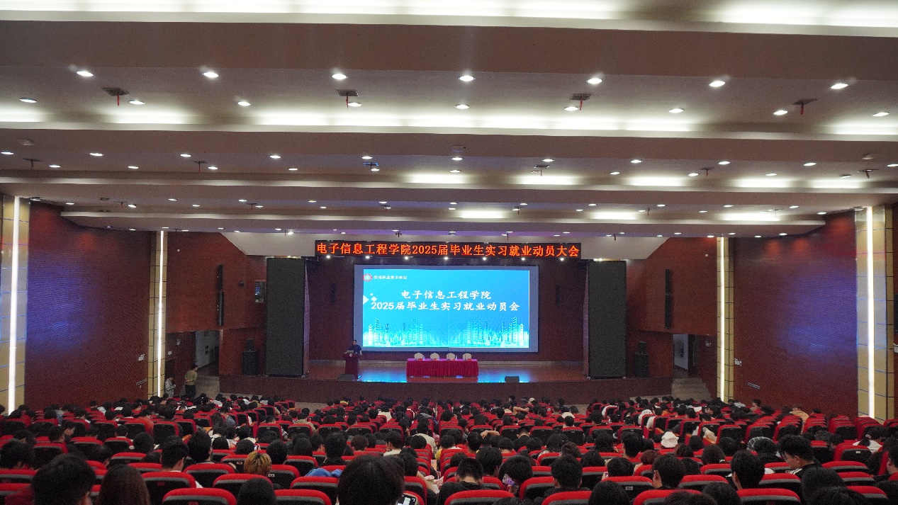 2024年10月28日电子信息工程学院在新培楼报告大厅隆重举行25届毕业生实习就业动员会成功举办。电信学院党总支书记李济民、院长刘罗仁、学工副院长邓明亮、教学副院长刘理云以及各班的辅导员老师们出席了此次会议。