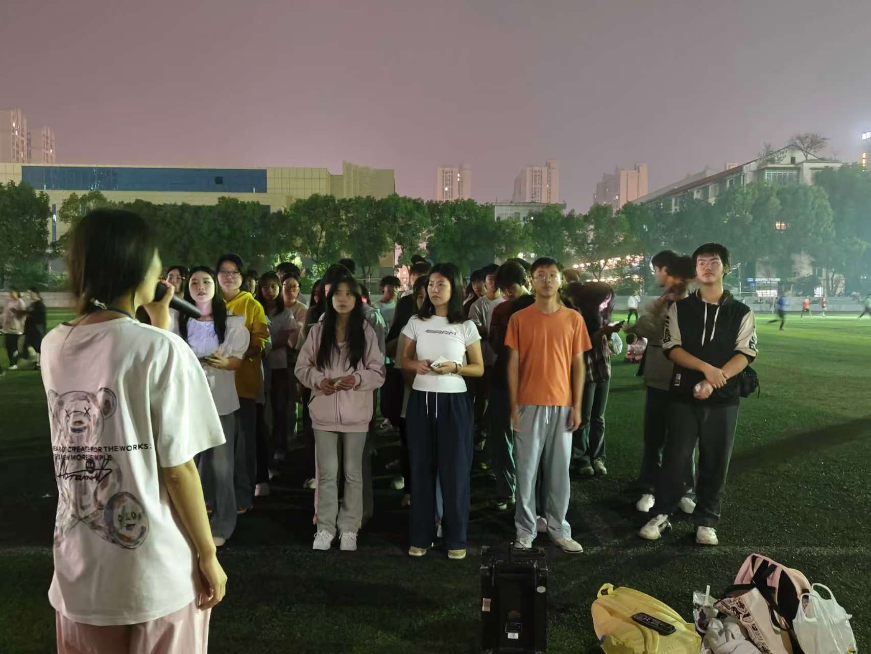 11月14日星期四下午18:20,电子信息工程学院于田径场举行了以“塑造积极心态,共创幸福校园”为主题的心理健康活动,此举不单为了加强全体学生彼此之间的联系和了解,也旨在营造更友好、更健康、更积极、更团结的良好学院氛围。本次活动主要由电信心教专干周永坚老师指导,心教部张安娜主持,心教部成员进行配合工作,活动对象为电信学院全体学生报名参与。