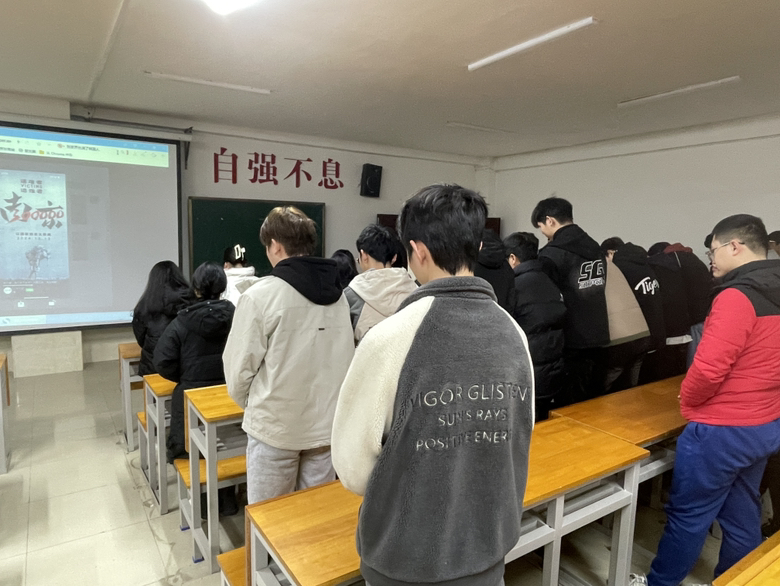 12月13日下午,于主教楼610,,全体成员为南京大屠杀遇难者,进行一分钟的默哀仪式,这一刻,时间仿佛凝固,我们所有人地下头,空气中弥漫着深深的哀思与敬意。这不仅是对遇难同胞的深切哀悼,更是我们为那些逝去的生命默哀,为那些为国家、为民族英勇斗争的先烈们致敬。