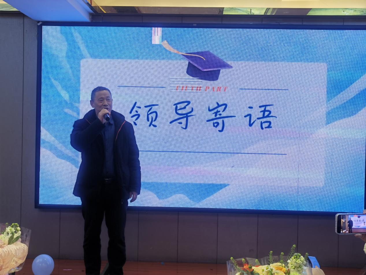 辅导员与讲师们合唱《再见》,推出毕业蛋糕,寓意着全新启程。学生们手捧鲜花走向老师,感恩之情溢于言表。电信学院院长刘罗仁总结发言,他向实习学子送上真挚祝福与关怀,叮嘱大家怀揣感恩之心,铭记美和易思“爱的教育”,在实习中成长蜕变,让青春梦想展翅翱翔。