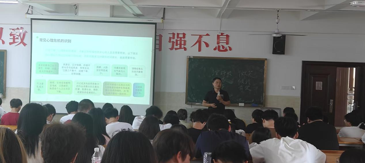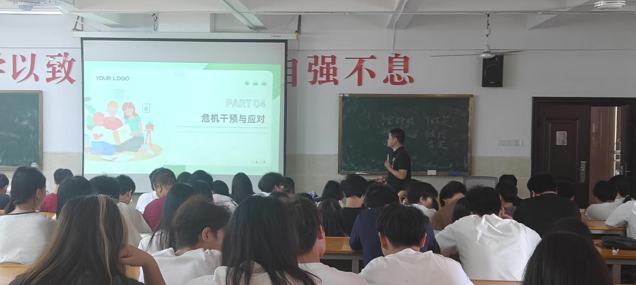 最后,周老师讲解了发现同学心理健康问题时的危机干预方法和应对策略。他强调,应冷静耐心倾听并真诚关心同学,确认需要帮助后,立即联系老师。他还提醒我们识别心理危机信号,如极度情绪低落或自杀意念,处理危机时,要尊重隐私,避免过度询问或传播信息,以免增加压力和伤害。