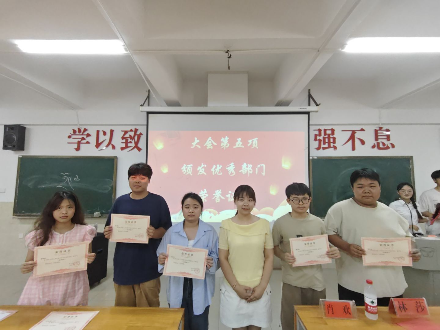 大会上,“优秀团干”“劳模之星”等各类奖项依次颁发,获奖同学分批登台领奖,“优秀部门”和“优秀班级”等集体荣誉也花落各家,代表们手持奖状展现出团队协作的风采。台下掌声雷动,即是对同学们的喝彩,也是对集体荣誉的致敬。随后,教师代表与学生代表先后发言,教师代表从专业成长与品德修为切入,为同学们锚定前行方向;学生代表分享青春感悟与奋进故事,以亲身经历激励全场,现场互动热烈,榜样的力量持续流淌。