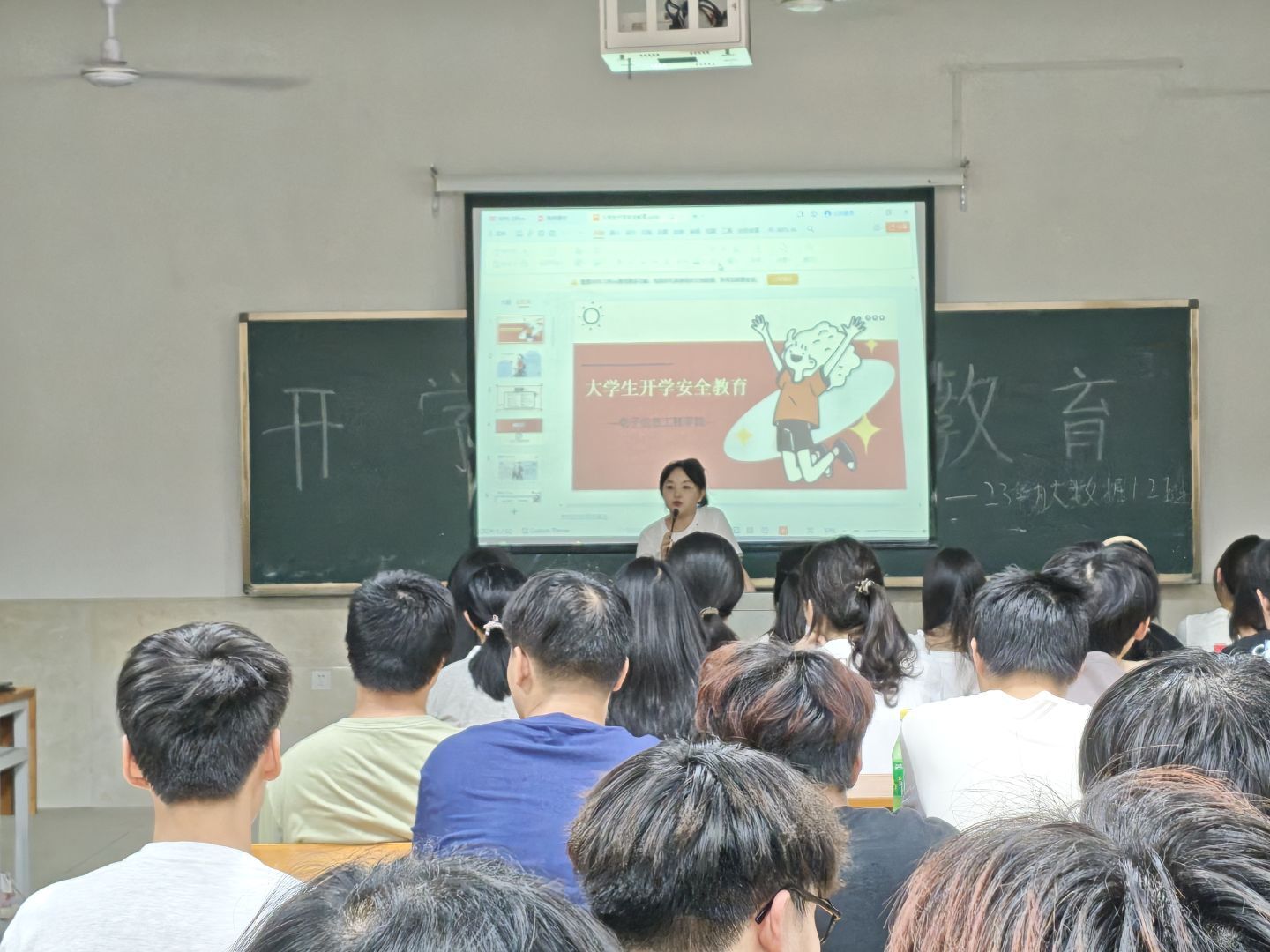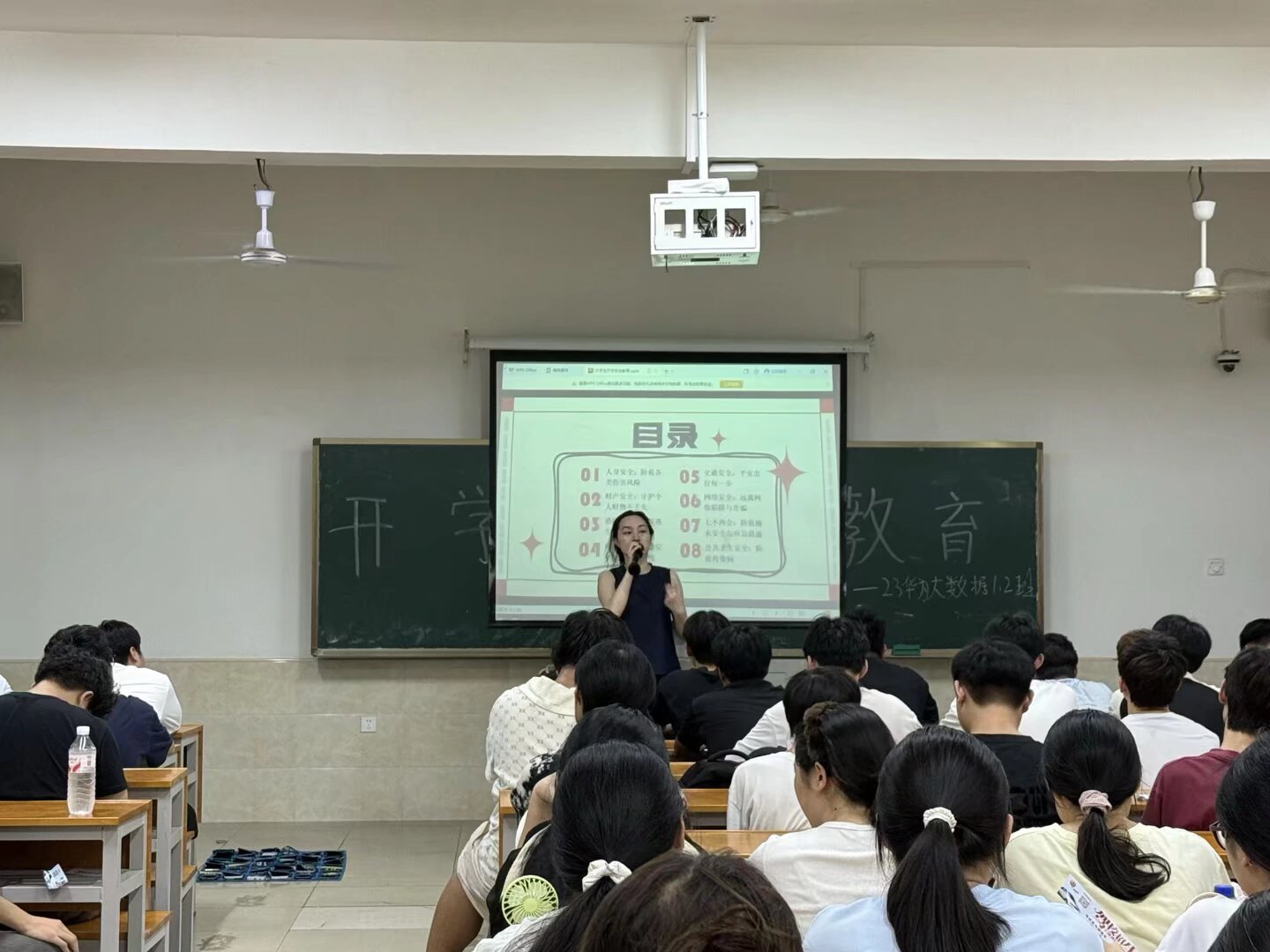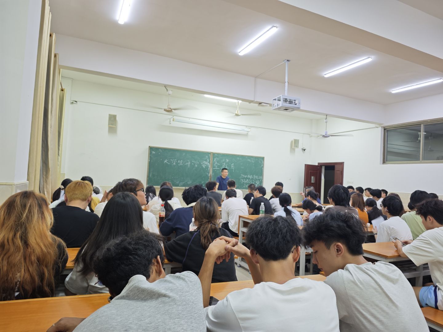 在纪律与安全强调环节,辅导员重申了课堂考勤、宿舍管理、校园文明等规章制度,提醒同学们严格遵守校纪校规,杜绝迟到、早退、旷课行为,不使用大功率电器。同时,结合开学安全教育重点,辅导员围绕人身安全、财产安全、网络安全等内容,通过典型案例警示同学们提高安全防范意识,远离电信诈骗,筑牢校园安全防线。