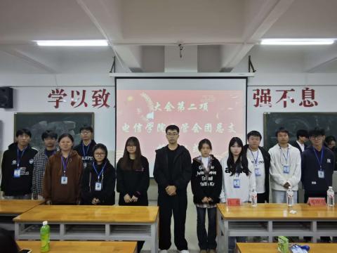 为进一步加强学生组织建设,电信学院于 10 月 30 日在主教楼 210 教室隆重举行新生授牌仪式。学院学工副院长邓明亮、学工干事林莎、团总支书记肖欢、相关辅导员代表、2023 级与 2024 级自管会团总支干事以及全体 2025 级新生干事共同参与,见证了这一重要时刻。