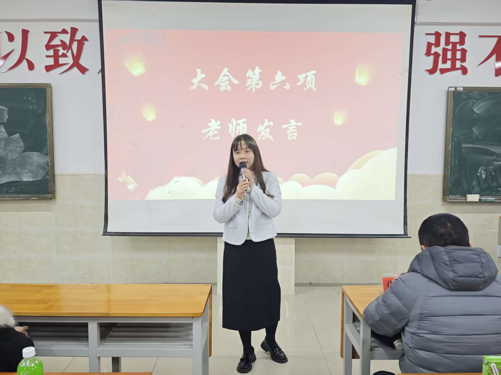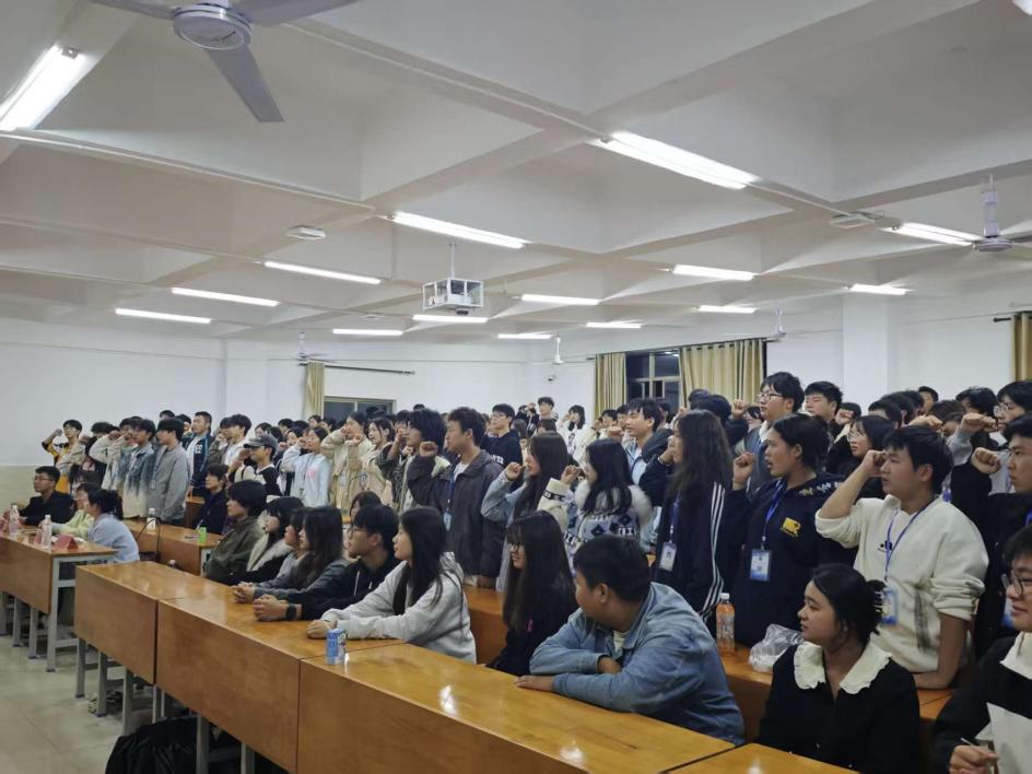 随后,2024 级干事代表与 2025 级新生干事代表分别发言。2024 级干事代表结合自身经历,分享了服务同学、团队协作的经验与感悟;新生干事代表则表达了加入组织的荣幸与激动之情,并表示将以饱满的热情和积极的态度履行各项职责。紧接着,全体 2025 级新生干事在领誓人的带领下庄严宣誓,表达了恪尽职守、服务同学的坚定决心。