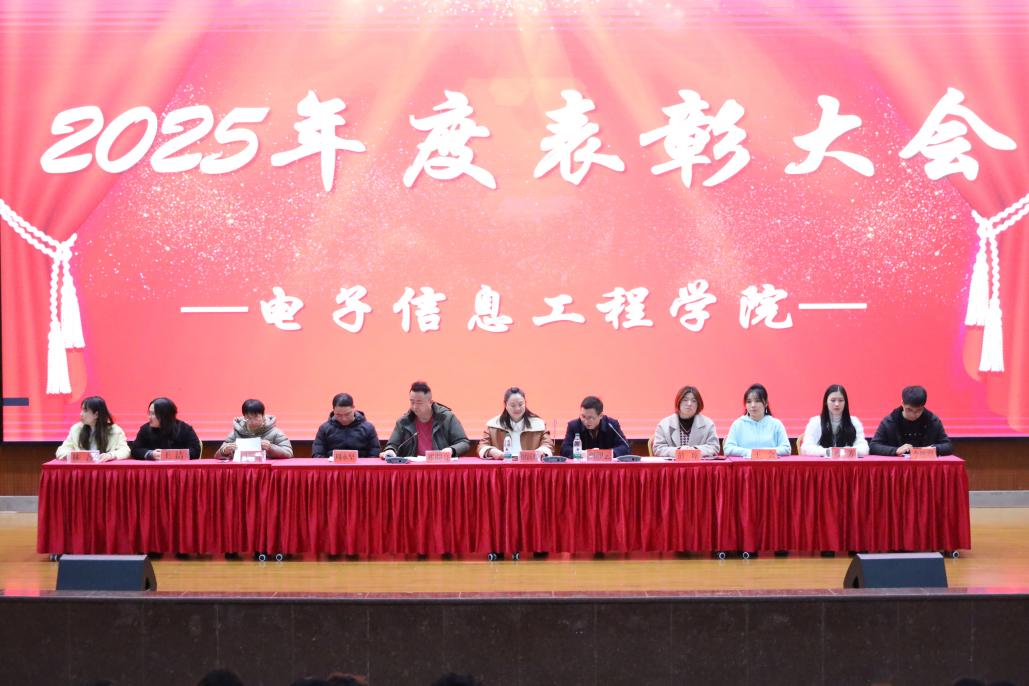 为表彰先进、树立典型,进一步激发全院学生奋发向上、追求卓越的精神风貌,2026年1月15日,电子信息工程学院在新培楼报告厅召开2025年度学生表彰大会。学院党总支书记谢跃辉、教学副院长刘理云、学工副院长邓明亮出席,大会由邓明亮主持,全体辅导员、24级、25级学生共七百余人参加,共同见证这一荣耀时刻。