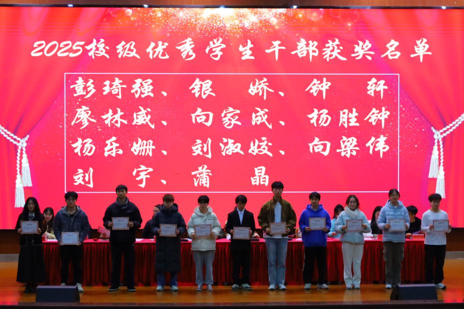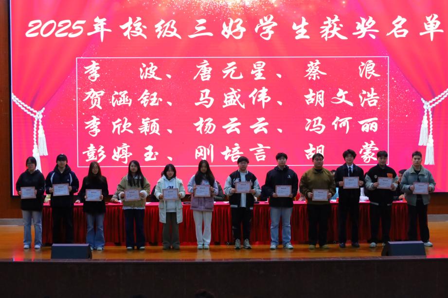 大会在庄严的国歌声中拉开帷幕。刘理云按类别分项目宣读了2025年度表现突出的先进集体与个人,涵盖校级先进班集体、文明寝室、文化艺术节获奖者、体育之星、奉献之星、职业生涯规划大赛获奖者、书香娄职读书分享活动获奖者及校(院)级优秀学生干部、三好学生、国家励志奖学金获得者等十余项荣誉。在主席台就坐的领导和老师共同为198名获奖同学颁奖,现场气氛热烈,充分展现了电信学子勤奋学习、勇于拼搏、全面发展的精神风貌。