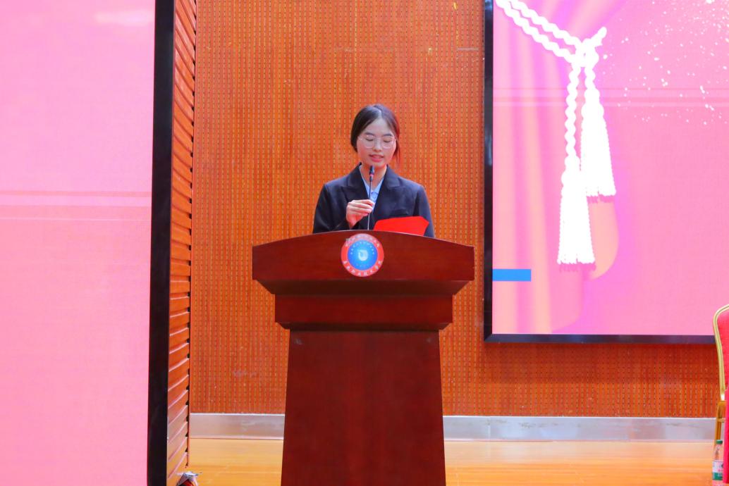 颁奖结束后,学生代表赵金玉以“感恩与奋斗”为主题发言。她结合自身成长经历,深情感谢学院领导与老师的培养与支持,感谢学校提供的广阔舞台,并围绕感恩、务实、担当等关键词,号召同学们珍惜大学美好时光,努力提升综合素养,将荣誉转化为前进动力,勇敢追求个人梦想。