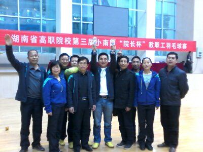 由湖南省教育厅高职教育学会举办的第三届“院长杯”教工羽毛球赛于11月19日至20日在长沙商贸职院举行。院工会主席曾国基任领队,纪委书记邹松建等七名运动员参加了角逐。在赛场上,运动员们顽强拼搏,斗志昂扬,先后以3:2和3:1战胜了民政职院和省教科院代表队,荣获三等奖。同时以组织严密、着装整齐、作风顽强被组委会授予“优秀体育道德风尚奖”称号再次为学院争了光。本次比赛共吸引了18所院校代表队参加。
