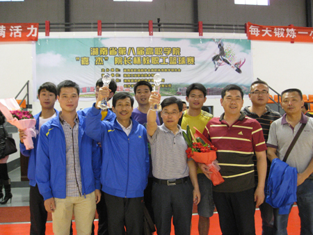 5月7日-15日,省教育厅组织举办了湖南省高职学院第八届“嘉杰”院长杯教职工篮球赛,我院以党委副书记欧友佳任领队,院长杜祥培、纪委书记邹松建、工会主席曾国基以及院内各部门青年教师组成的篮球队不畏艰辛,奋力拼搏,在对手强势突出的情况下,通过教练付鹏主任的精心组织和策划,首次参赛就在二十多支队伍中勇猛顽强地打进了前八强,荣获了本次大赛的二等奖和体育道德风尚奖,得到省教育厅和省篮球协会的高度赞扬。(罗平良)