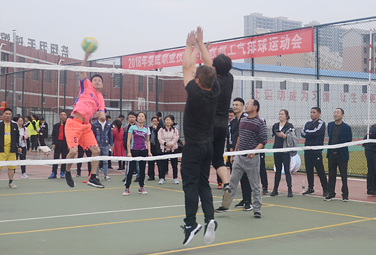 在热烈的掌声中,颜彩飞宣布2018年教职工气排球比赛正式开幕。紧张激烈的比赛即在四块比赛场地中举行,比赛中,参赛队员们热情饱满,充分运用个人技术,配合默契,团队协作娴熟。发球、起跳、拦网,你接我挡,你传我打,比赛场面紧张而热烈,引得阵阵掌声和欢呼声。