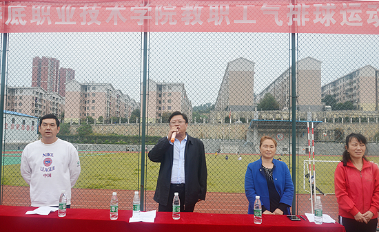10月23日下午,我校2018年教职工气排球比赛开幕式在医学院排球场举行。校工会主席、副校长颜彩飞,工会副主席李新红、曾华,公课部主任付鹏出席开幕式。全体运动员、教练员、裁判员、工会工作人员参加开幕式。开幕式由付鹏主持。
