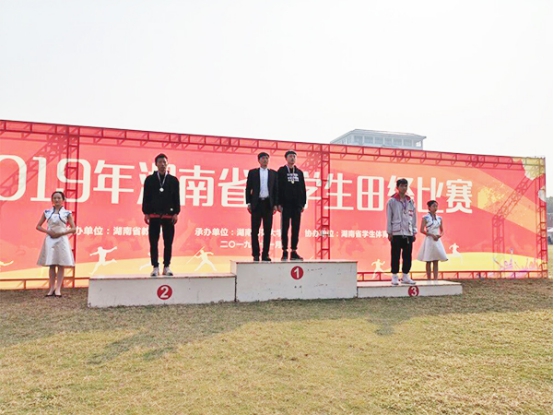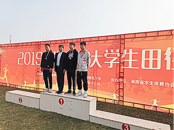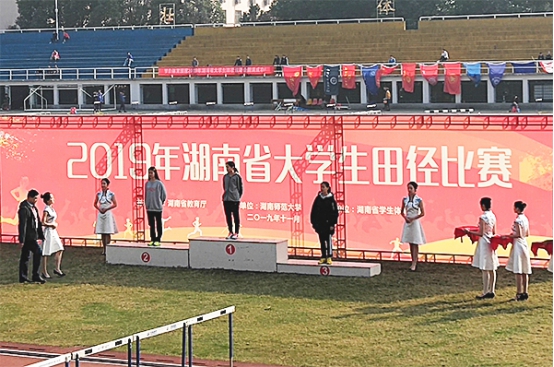 2019年湖南省大学生田径锦标赛于11月5日至10日在湖南师范大学举行,我校组队参赛。此次比赛共设40个项目,50所高校参加,其中高职高专院校31所。我校公共课教学部带队参加的田径队顽强拼搏,经过激烈的角逐,魏超群获男子跳高金牌;张桥获女子1500米铜牌;钟少壮获男子撑杆跳高铜牌。此外,张桥、田如涛、杨钰龙、彭卓敏分获高职高专组女子800米第五名、男子撑杆跳高第五名、男子110米栏第五名、女子三级跳远第五名。(申再林)
