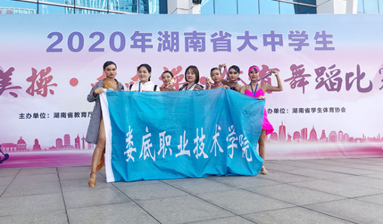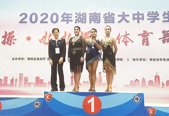 11月7日-9日,由湖南省教育厅、湖南省体育局主办的2020年湖南省大中学生健美操啦啦操体育舞蹈比赛在湖南网络工程职业学院举行。我校由副校长龙伟担任领队,李荔、何维峰、李敏芝、邱玮琳四位教练带领6位体育舞蹈队的学生参加了比赛。在高职院校甲组比赛中,经过紧张激烈的角逐,我校选手捷报频传,获得3金4银。其中,胡婷获得女子单人牛仔第一名;郑雪获得女子单人恰恰第一名;王佳琳获得女子单人斗牛第一名;郑雪获得女子单人斗牛第二名;罗卉南获得女子单人伦巴第二名、单人桑巴第二名;胡婷获得女子单人恰恰第二名;曾新颖获得女子单人牛仔第五名;彭幸获得女子单人桑巴第六名。
